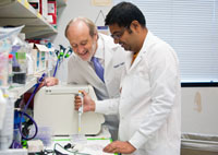| Arindam Bhattacharyya, Ph.D., an assistant professor of immunology at the University of Calcutta in India, came to Georgetown University Medical Center for three months this summer as a Fulbright Scholar. He studies cancer immunology, and he opted to join the team at the laboratory of Robert Clarke, Ph.D., D.Sc., Dean for Research. |